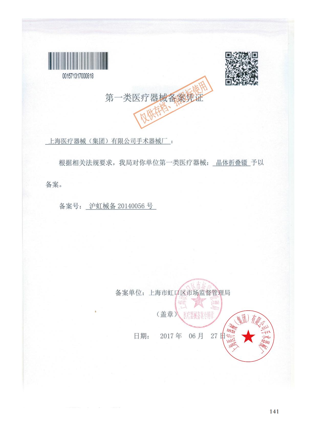 - 產(chǎn)品注冊證號:滬虹械備20140056號