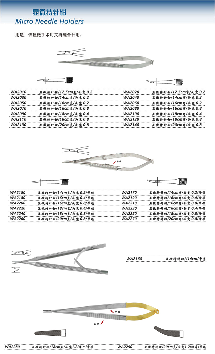 金鐘顯微持針鉗直 WA2030 14cm直 頭寬0.2