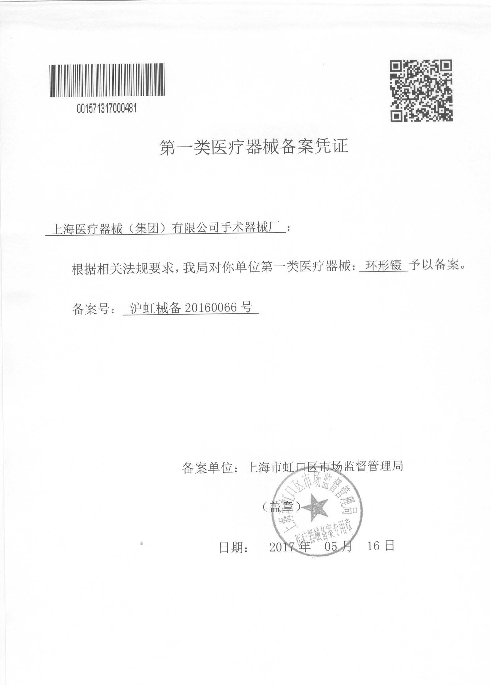 - 產(chǎn)品注冊證號:滬虹械備 20160066 號