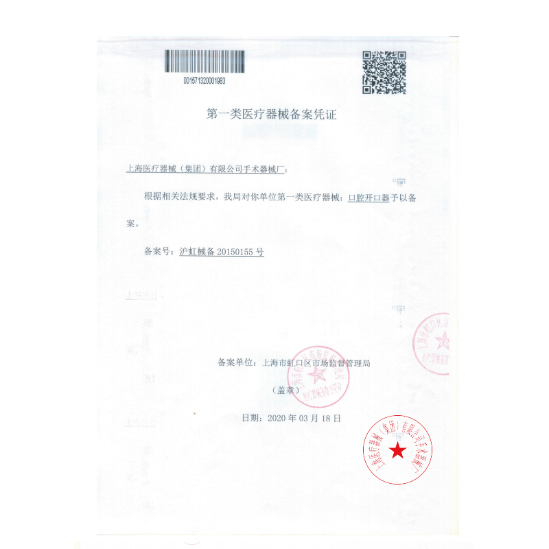 - 產(chǎn)品注冊證號:滬虹械備20150155號