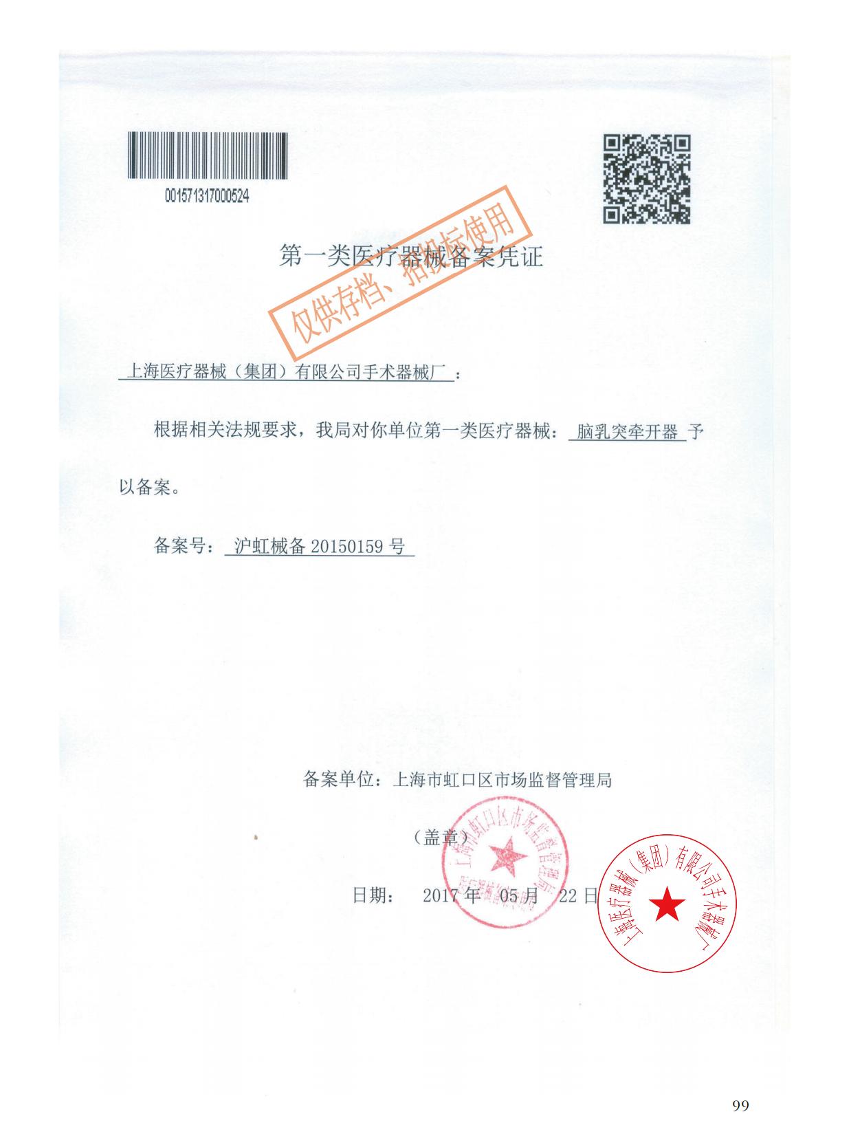 - 產(chǎn)品注冊證號:滬虹械備20150159號