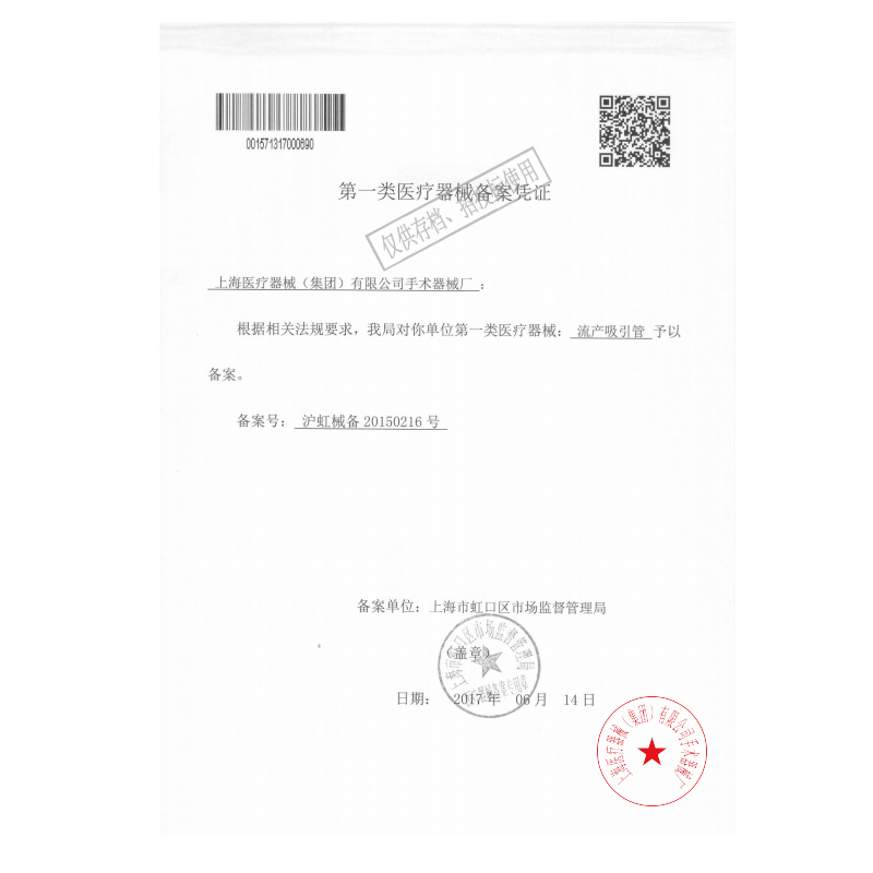 - 產(chǎn)品注冊證號:滬虹械備20150216號