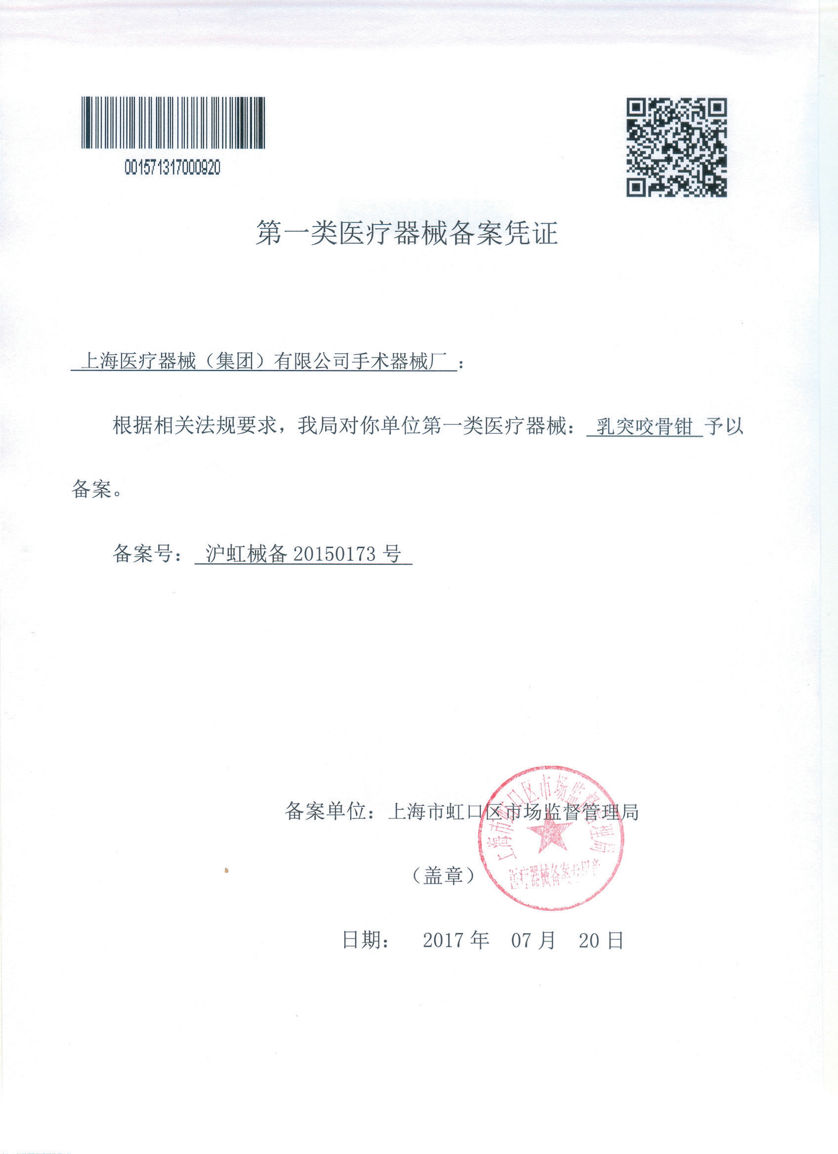 - 產(chǎn)品注冊(cè)證號(hào):滬虹械備20150173號(hào)