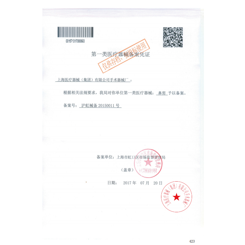 - 產(chǎn)品注冊證號:滬虹械備20150011號
