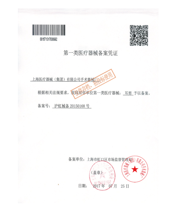 - 生產(chǎn)企業(yè):上海醫(yī)療器械(集團)有限公司手術器械廠(金鐘)