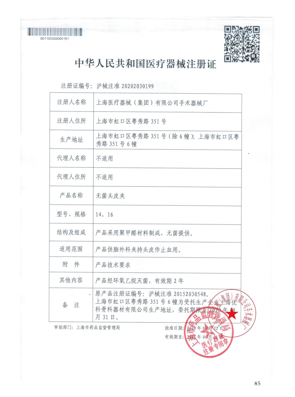 - 產(chǎn)品注冊證號:滬械注準(zhǔn)20202030199