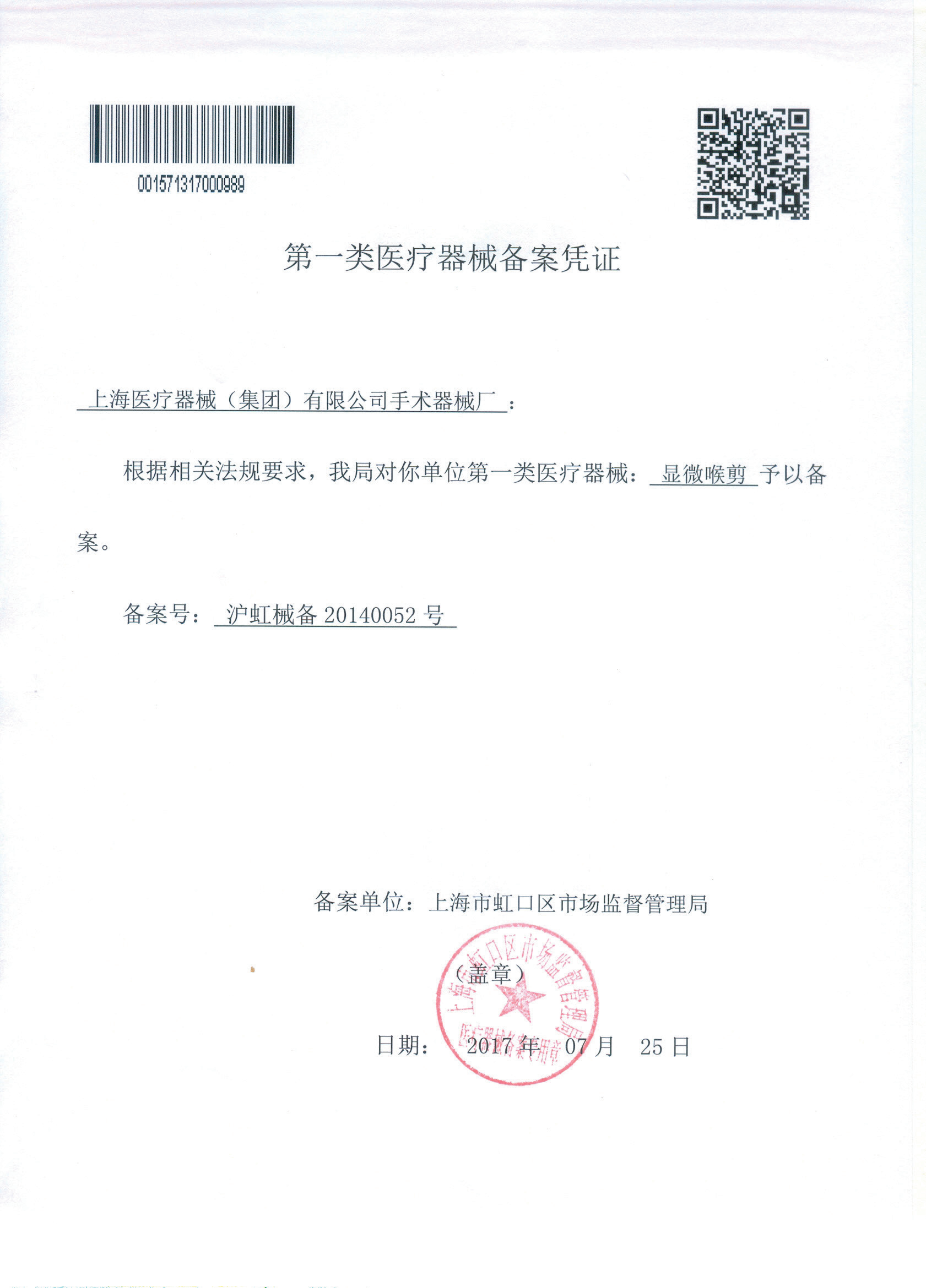 - 產(chǎn)品注冊證號:滬虹械備20140052號