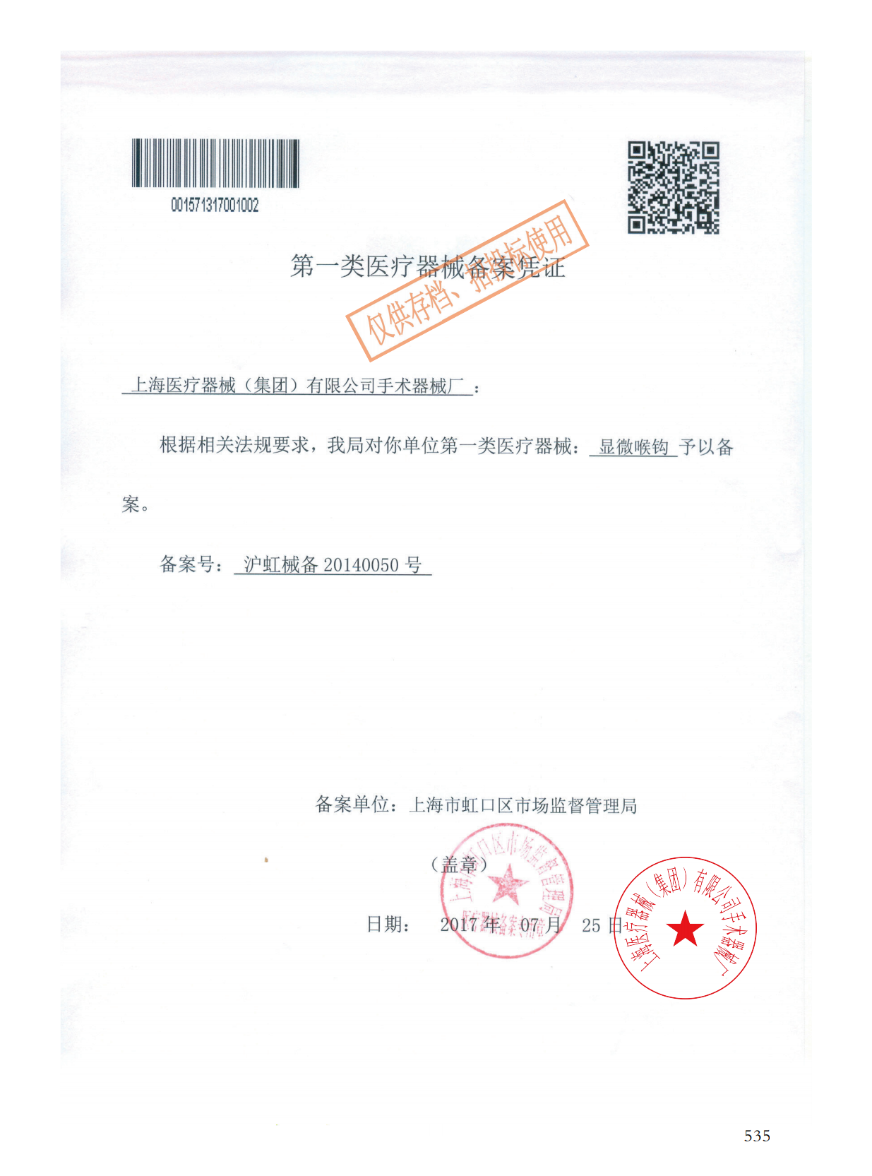 - 生產(chǎn)企業(yè):上海醫(yī)療器械(集團(tuán))有限公司手術(shù)器械廠(金鐘)
