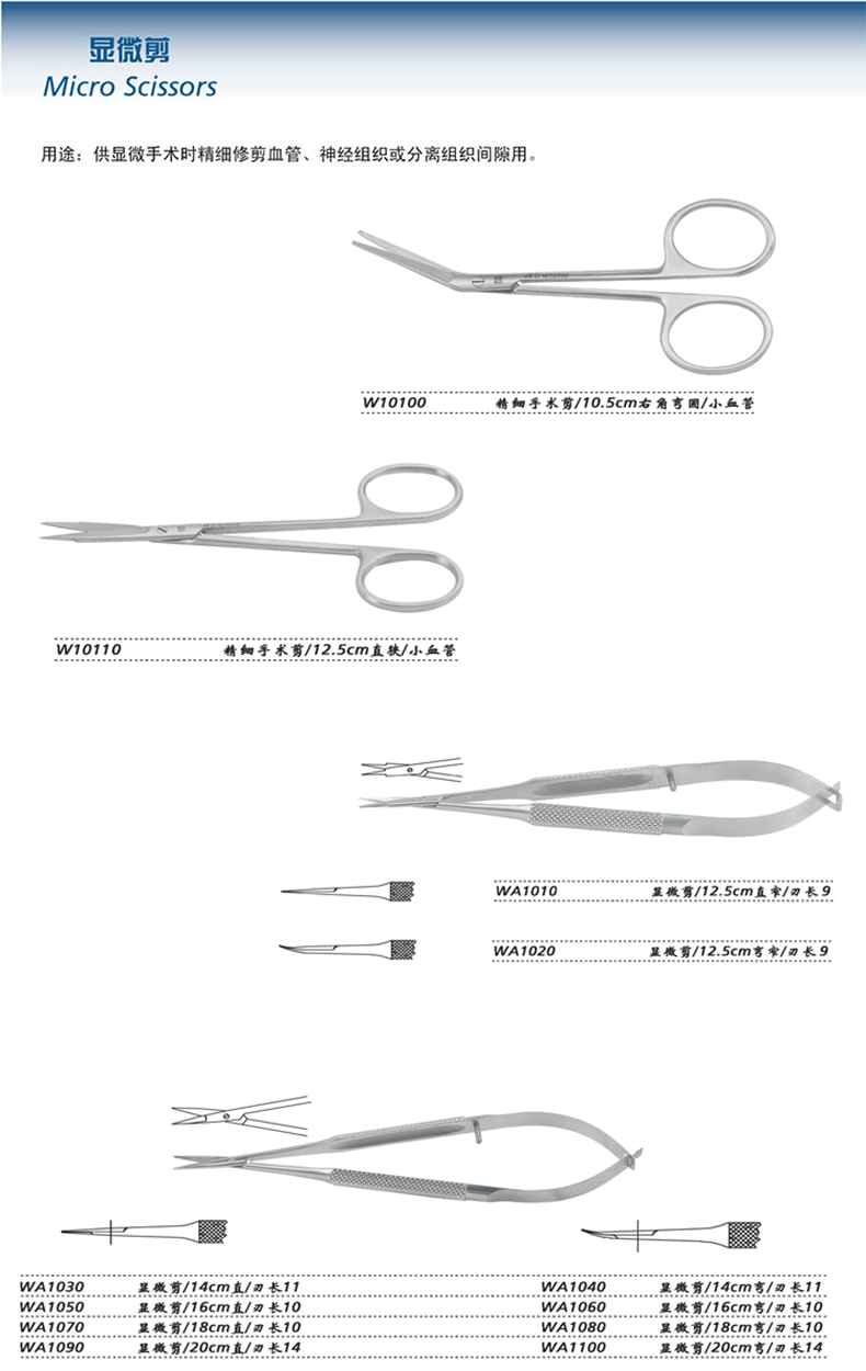 - 產(chǎn)品適用范圍:用于顯微手術(shù)時精細(xì)修剪組織。
