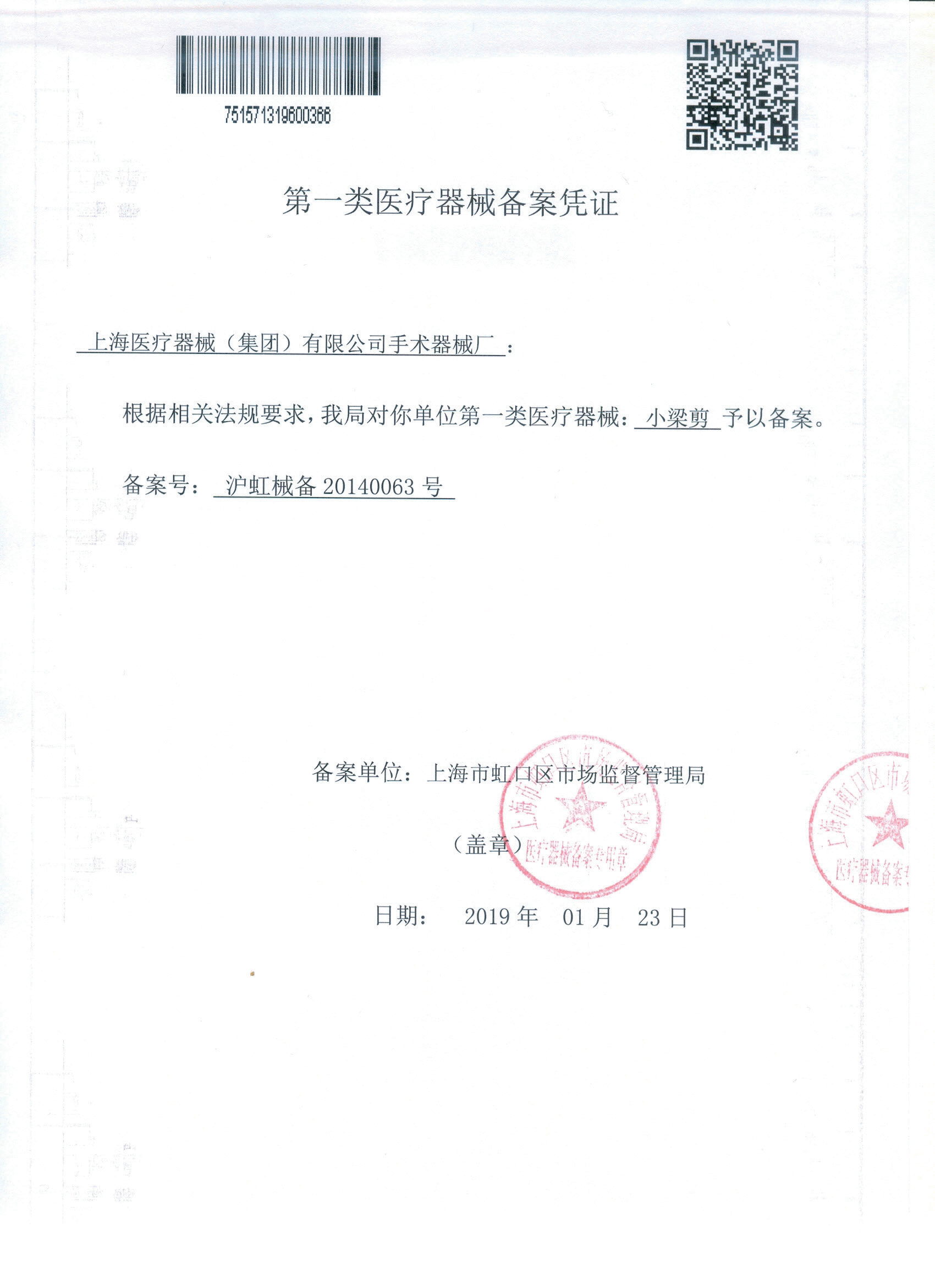 - 產品注冊證號:滬虹械備20140063號