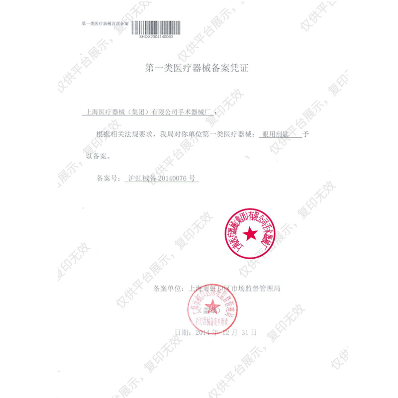 - 產品注冊證號:滬虹械備20140076號