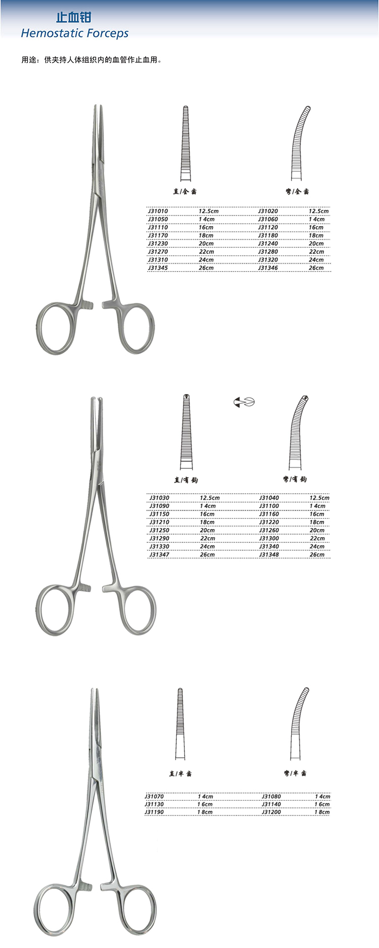 - 產(chǎn)品結(jié)構(gòu)及組成:由鉗喙、關(guān)節(jié)和鉗柄組成,頭部有唇頭齒,尾部為指圈,中間穿鰓后用鉚釘連接固定,兩指圈間有鎖止牙,起夾持固定作用。止血鉗由不銹鋼材料制成。可重復(fù)使用。