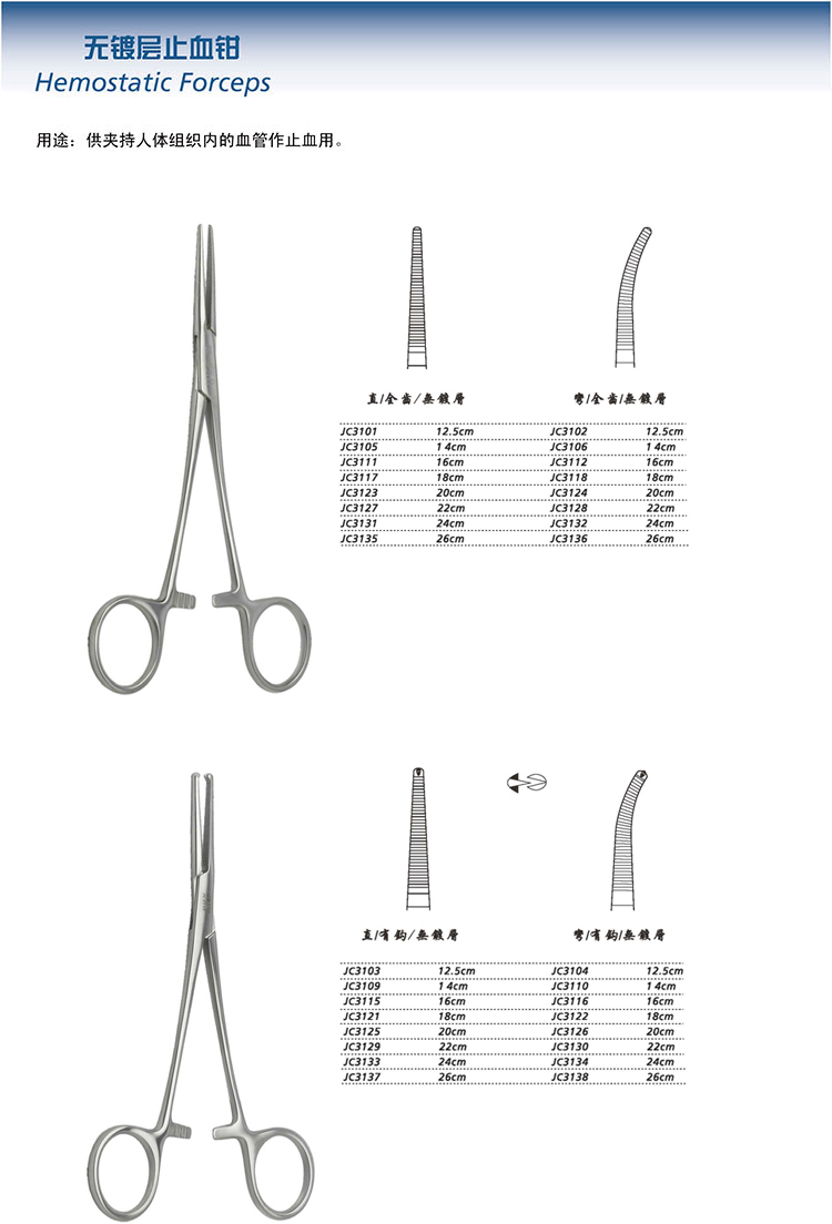 - 產品結構及組成:由鉗喙、關節(jié)和鉗柄組成,頭部有唇頭齒,尾部為指圈,中間穿鰓后用鉚釘連接固定,兩指圈間有鎖止牙,起夾持固定作用。止血鉗由不銹鋼材料制成??芍貜褪褂谩?/li>