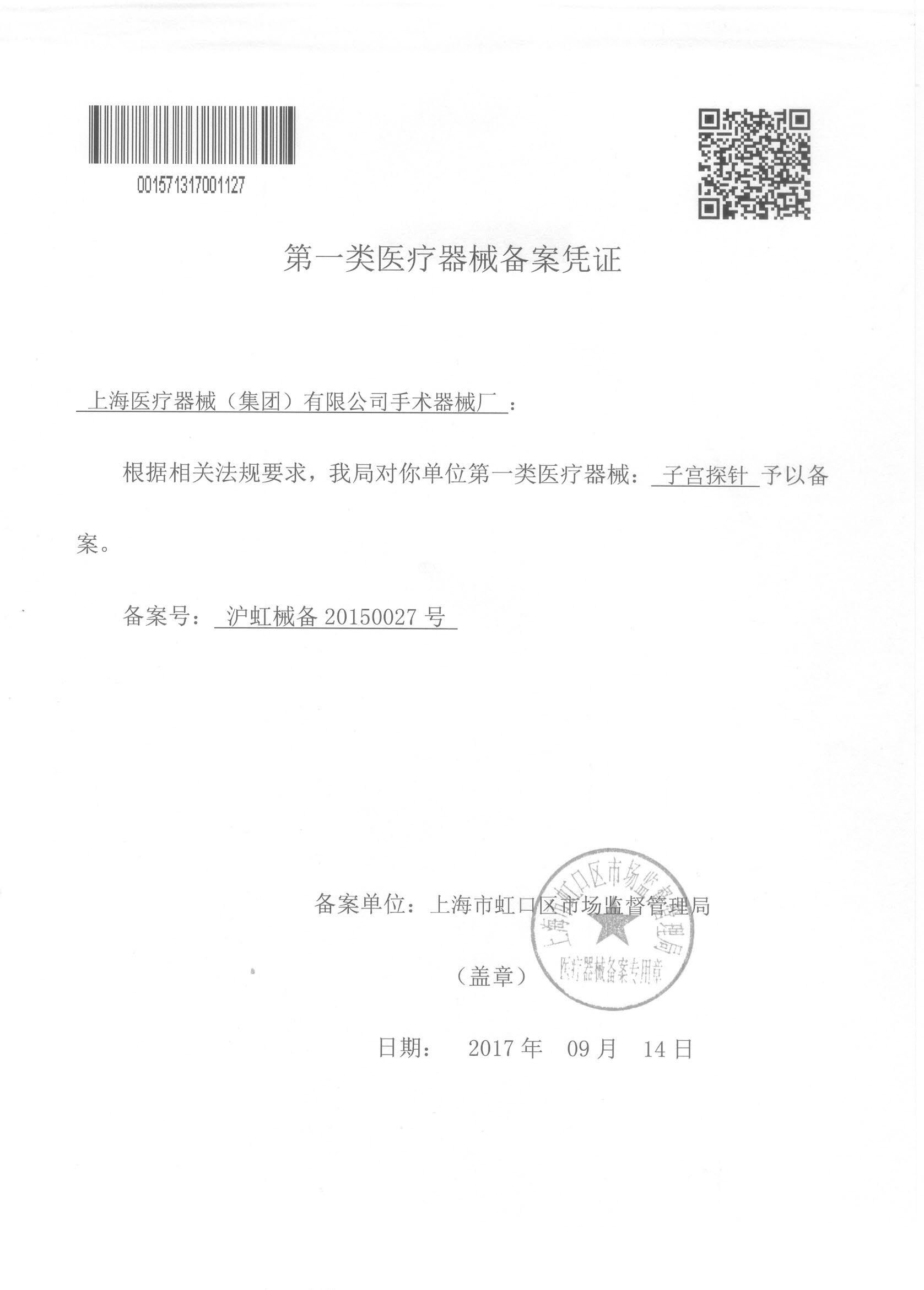 - 產(chǎn)品注冊(cè)證號(hào):滬虹械備20150027號(hào)
