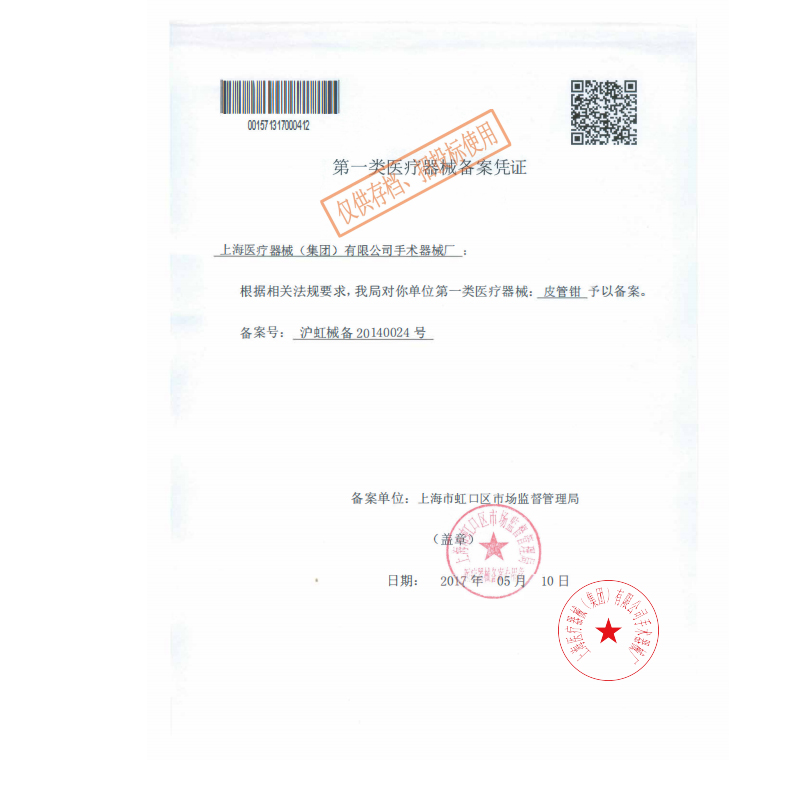 - 生產(chǎn)企業(yè):上海醫(yī)療器械(集團)有限公司手術器械廠(金鐘)