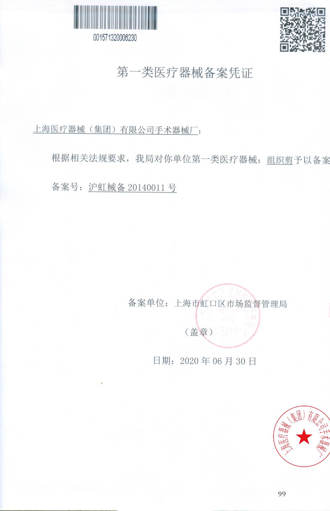 - 產品注冊證號:滬虹械備20140011號