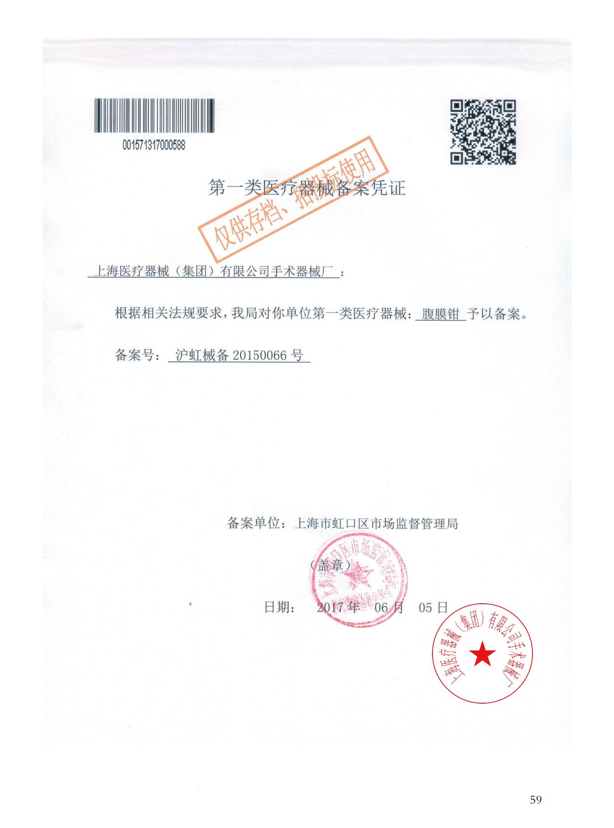 - 產(chǎn)品注冊證號:滬虹械備20150066號