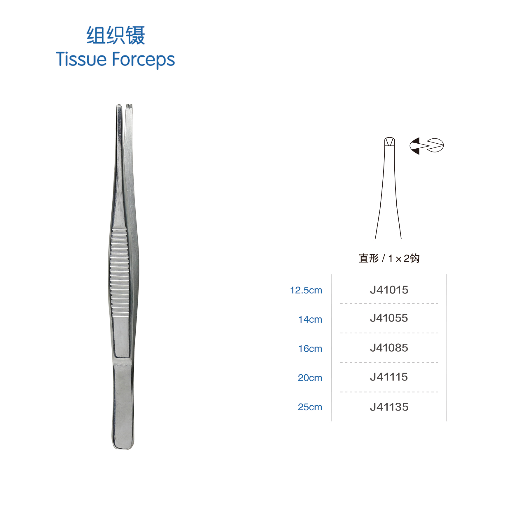 金鐘 組織鑷 J41015 12.5cm直形 1X2鉤