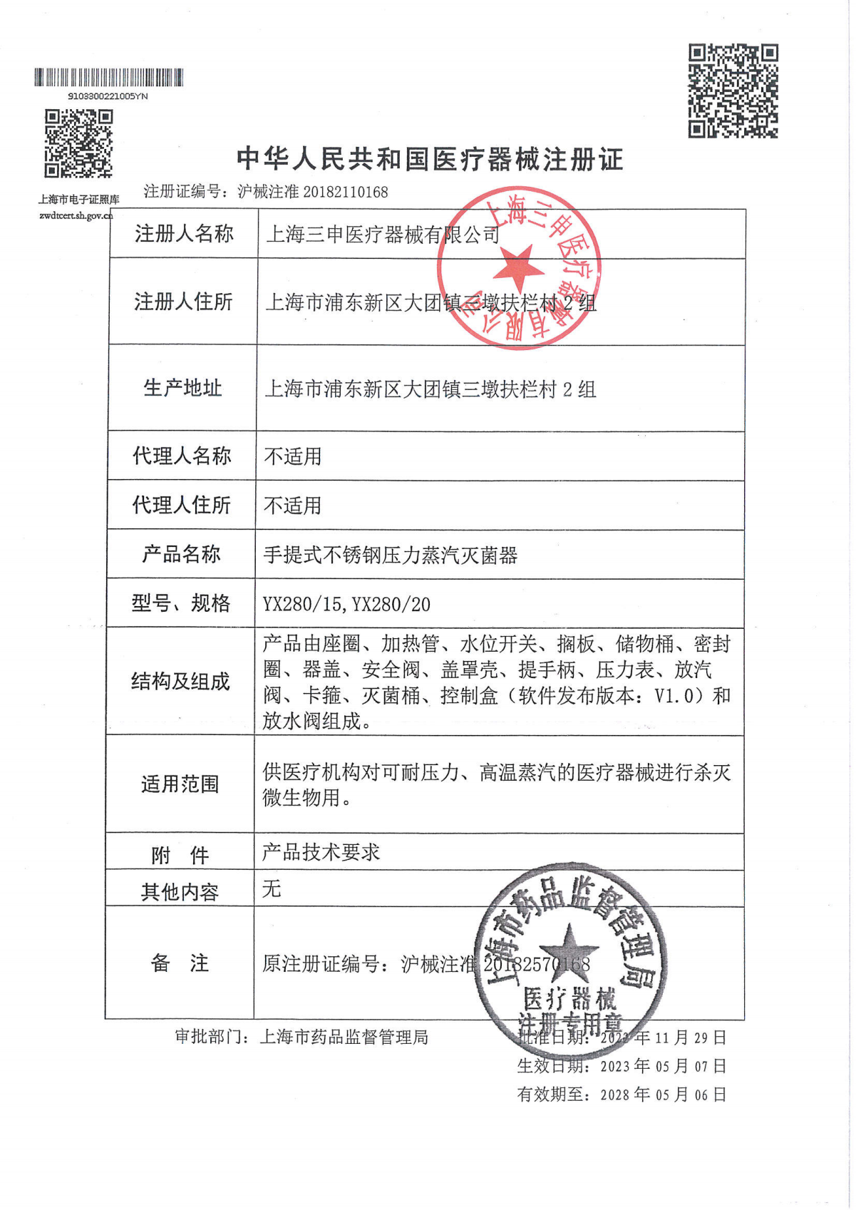 - 產(chǎn)品注冊證號(hào):滬械注準(zhǔn)20182110168
