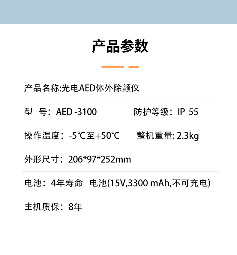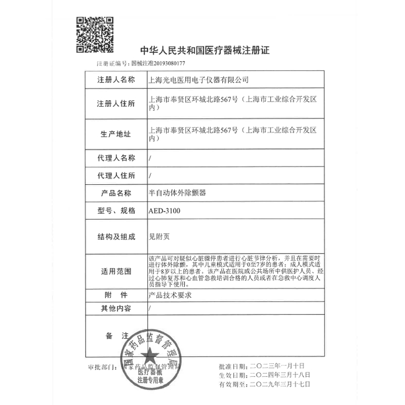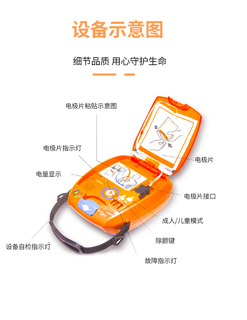 - 產(chǎn)品適用范圍:該產(chǎn)品可對疑似心臟驟?;颊哌M(jìn)行心臟節(jié)律分析,并且在需要時(shí)進(jìn)行體外除顫,其中兒童模式適用于0至7歲的患者;成人模式適用于8歲以上的患者。該產(chǎn)品在醫(yī)院或公共場所中供醫(yī)護(hù)人員、經(jīng)過心肺復(fù)蘇和心血管急救培訓(xùn)合格的人員或者在急救中心調(diào)度人員指導(dǎo)下使用。