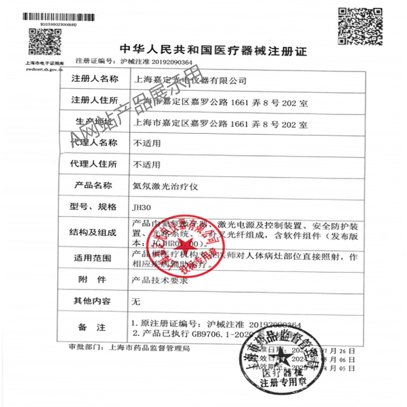 嘉光 氦氖激光治療儀 JH30 (智能型) 目前認(rèn)證: