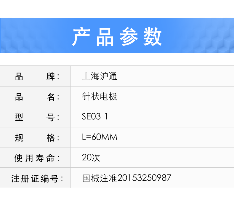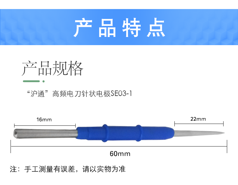 - 商品名稱:滬通高頻電刀針狀電極 SE03-1