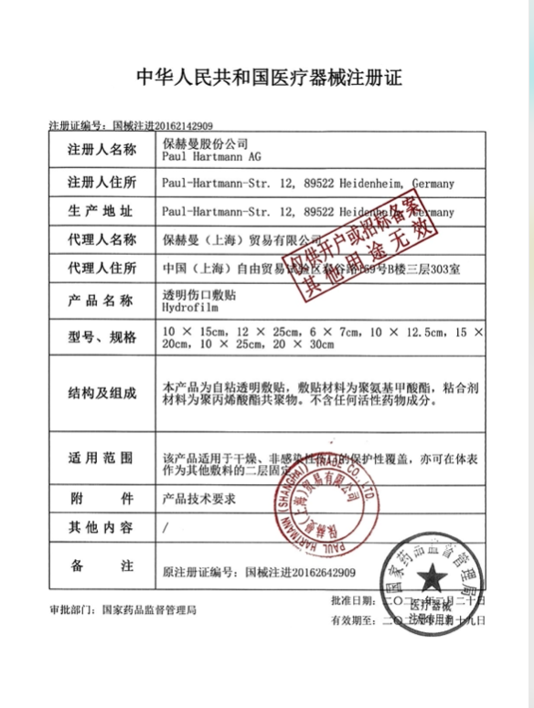 - 生產(chǎn)企業(yè):德國(guó)保赫曼 PAUL HARTMANN AG