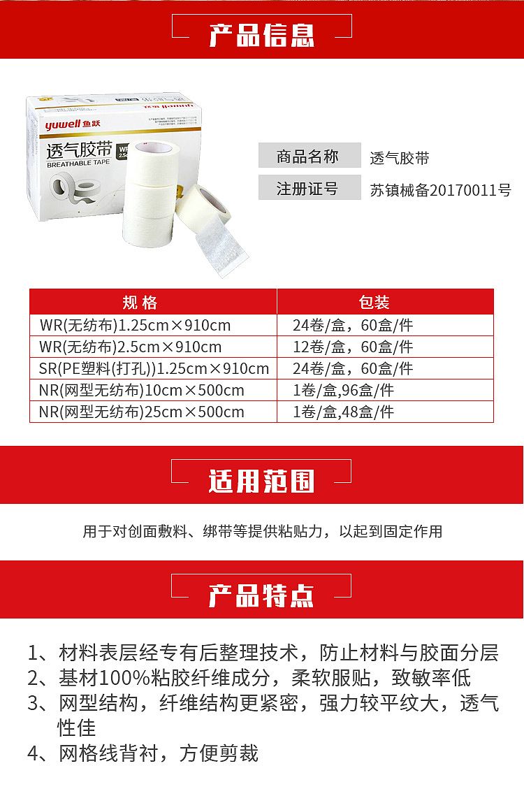 - 商品名稱:魚躍透氣膠帶 PE