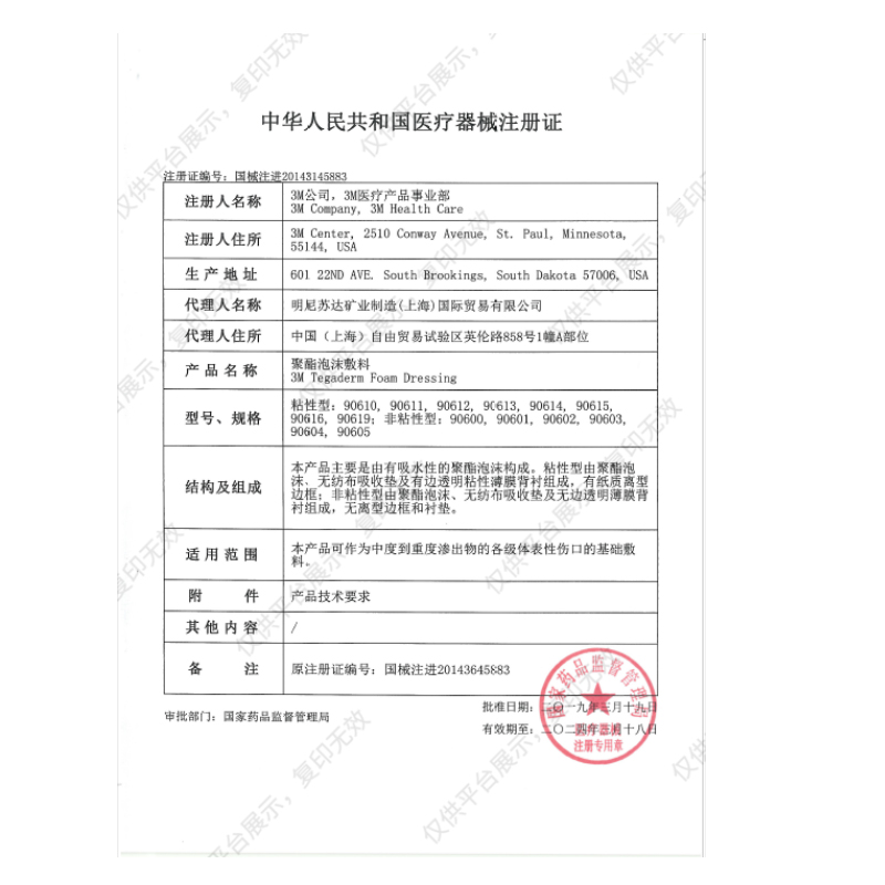 - 品名:聚酯泡沫敷料