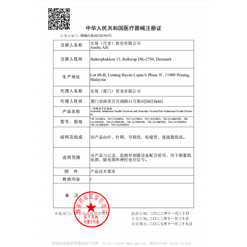 • 商品名稱:AMBU 丹麥安保一次性皮下針電極 746 12-150/1/20