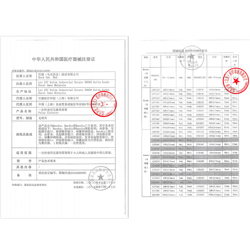 • 商品名稱:Bard 巴德一次性使用無菌導(dǎo)尿管 雙腔導(dǎo)尿管