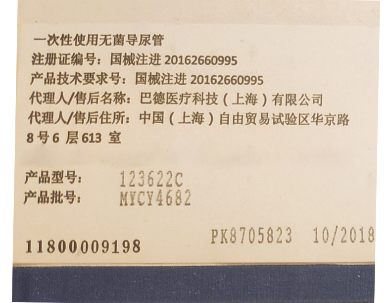 Bard 巴德一次性使用無(wú)菌導(dǎo)尿管 雙腔導(dǎo)尿管 投訴電話:021-56532303 訂購(gòu)聯(lián)系電話: 021-51601230
