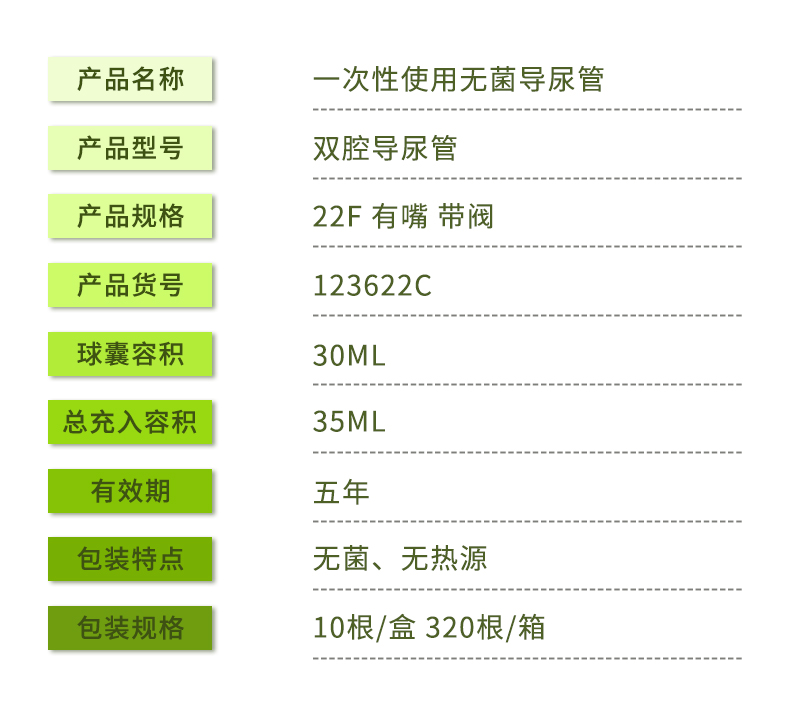 巴德一次性使用無(wú)菌雙腔導(dǎo)尿管 產(chǎn)品介紹
