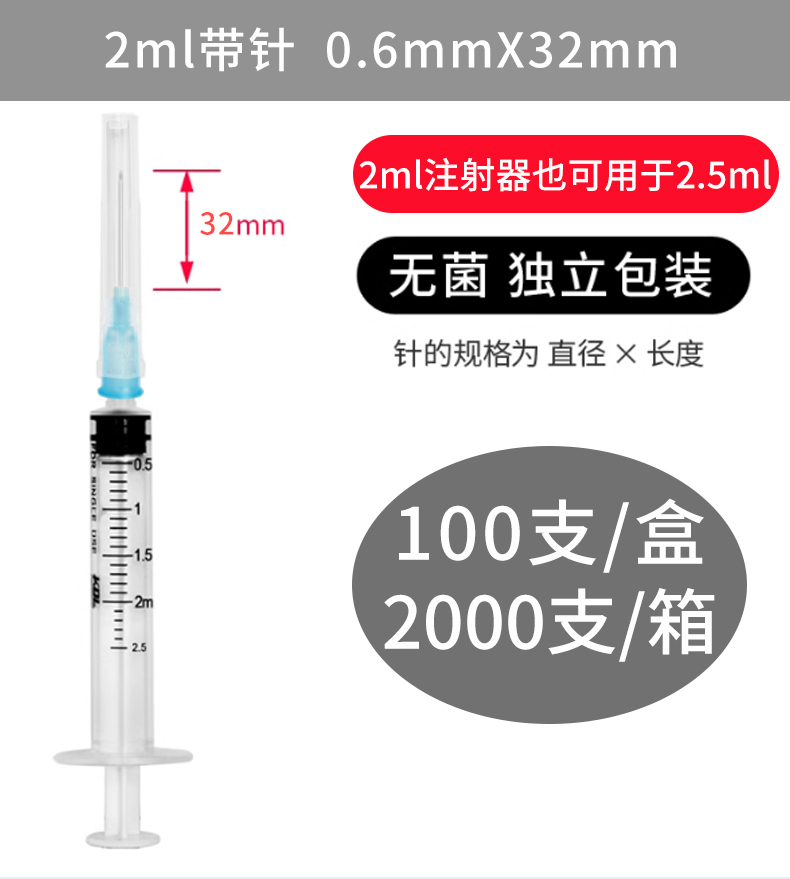 一次性使用無菌注射器(帶針) 2ml(0.6x32) 1600