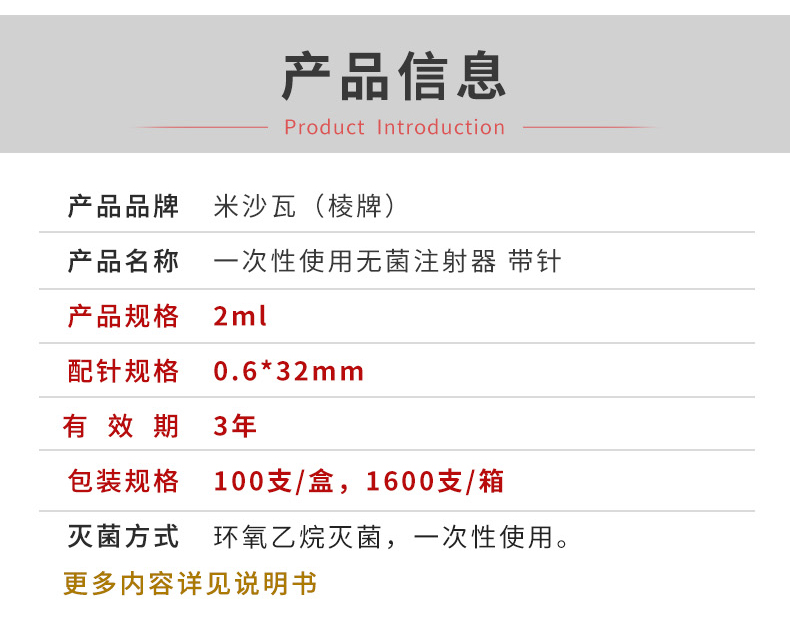 米沙瓦注射器 2ml帶針 0.6*32mm 產(chǎn)品介紹:
