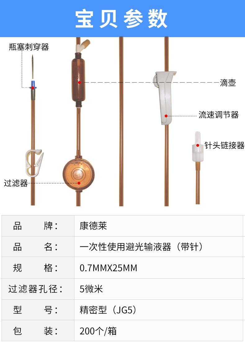 • 商品名稱:康德萊一次性使用避光輸液器 避光型