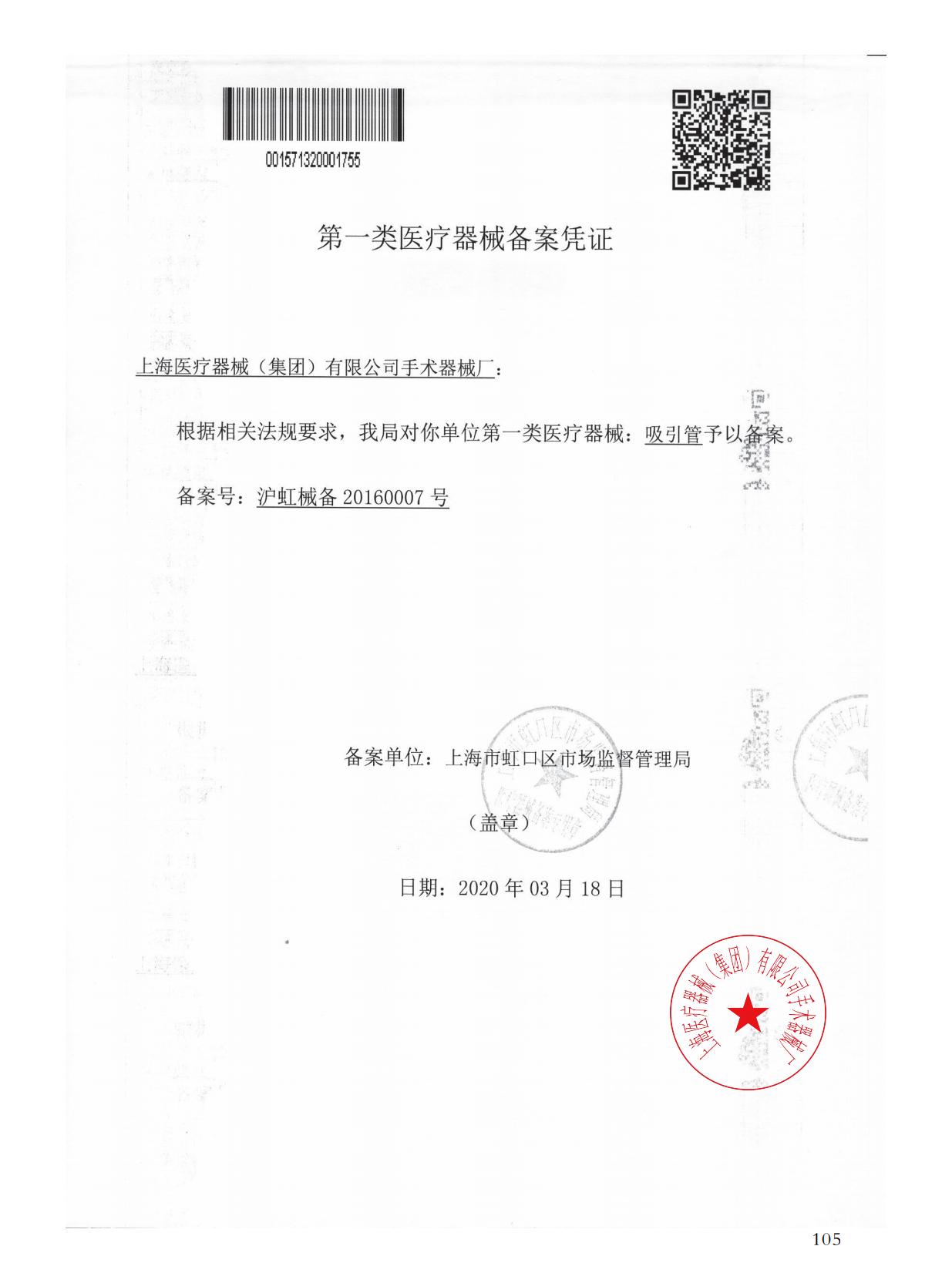 - 產(chǎn)品注冊證號:滬虹械備20160007號