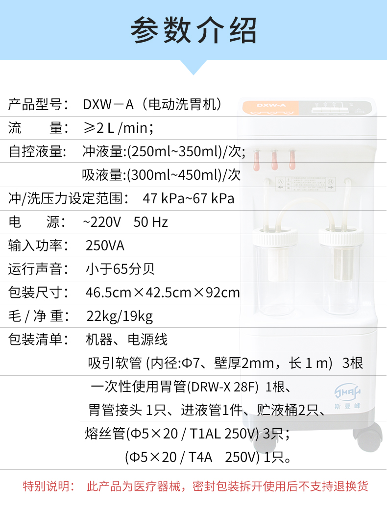 上海斯曼峰 電動洗胃機(jī) DXW-A 產(chǎn)品附件: