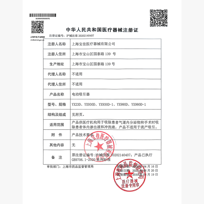 - 產(chǎn)品注冊(cè)證號(hào):滬械注準(zhǔn)20202140407