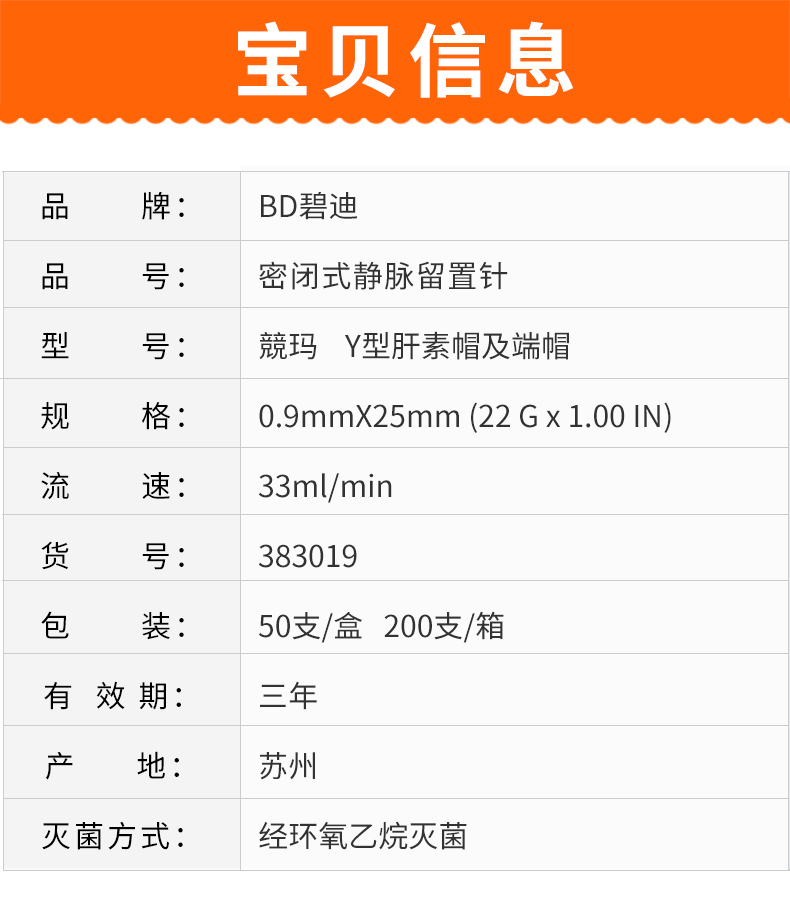 手機(jī)掃碼:BD 碧迪靜脈留置針 22G Y型