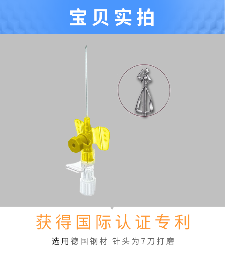 • 德國(guó)貝朗靜脈留置針針頭材料選用德國(guó)鋼材,針頭打磨為7刀打磨,獲得國(guó)際認(rèn)證。(普通針為4刀)