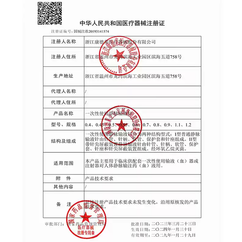 - 產(chǎn)品適用范圍:本產(chǎn)品主要用于臨床供配套一次性使用輸液(血)器或注射器對人體靜脈輸注藥(血)液用。