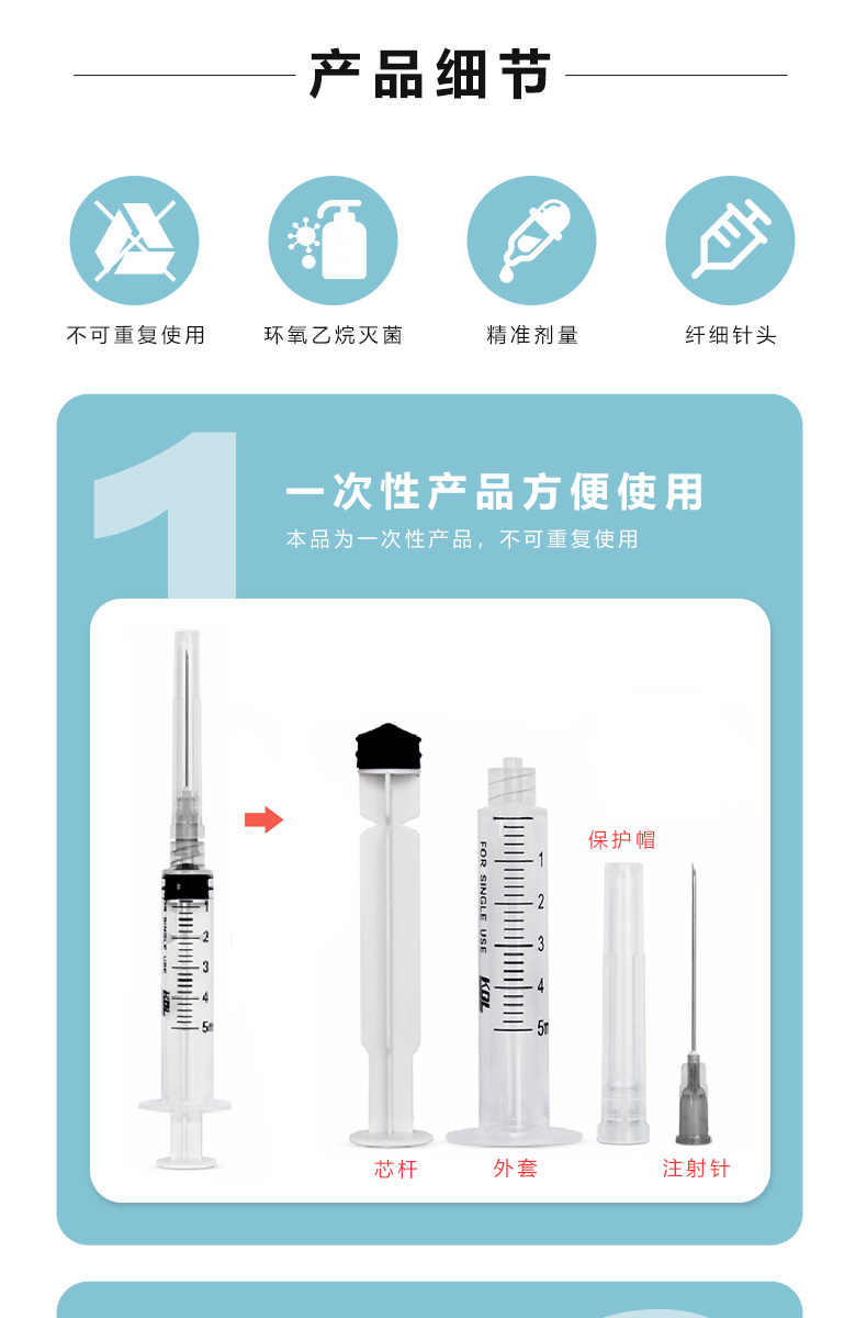 康德萊 一次性使用螺口注射器 5ml 產(chǎn)品特點: