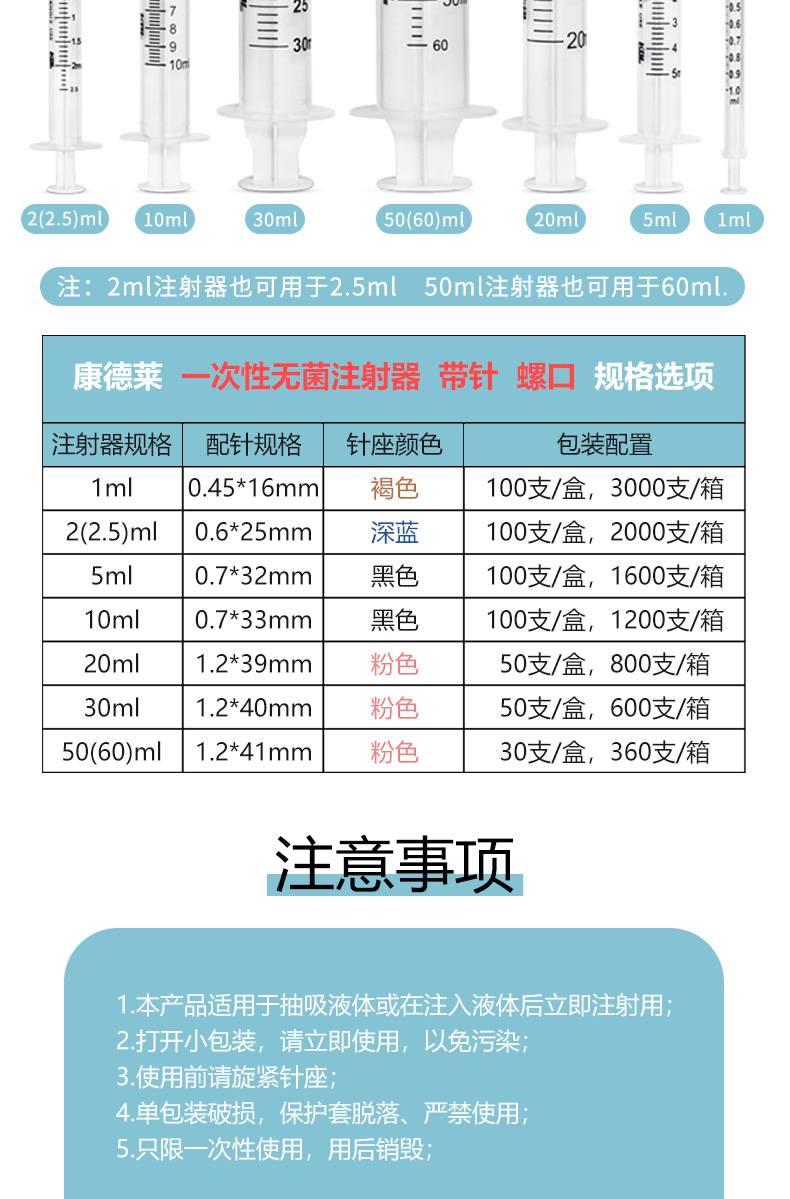 • 商品名稱:康德萊一次性使用無菌注射器 螺口
