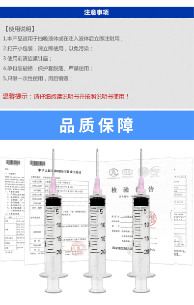 6. 本產(chǎn)品配套一次性注射針后,供對人體皮內(nèi),皮下注射或抽血用,也可配套靜脈輸液針供對人體靜脈注射藥液用