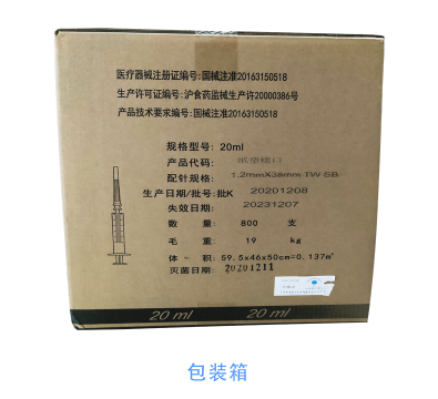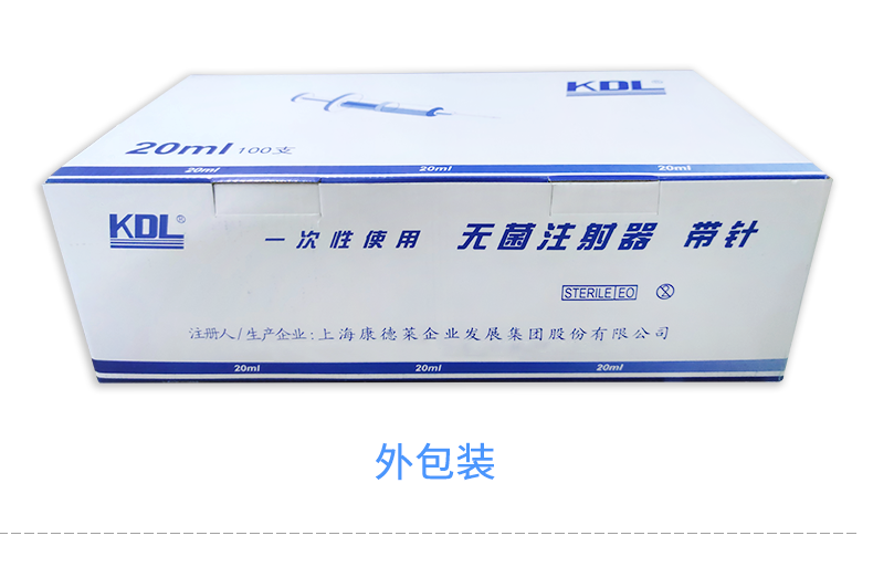 康德萊一次性使用無菌注射器螺口 20ml 帶針 1.2×38mm 100支/盒, 800支/箱, 一箱起批貨號:60017354
