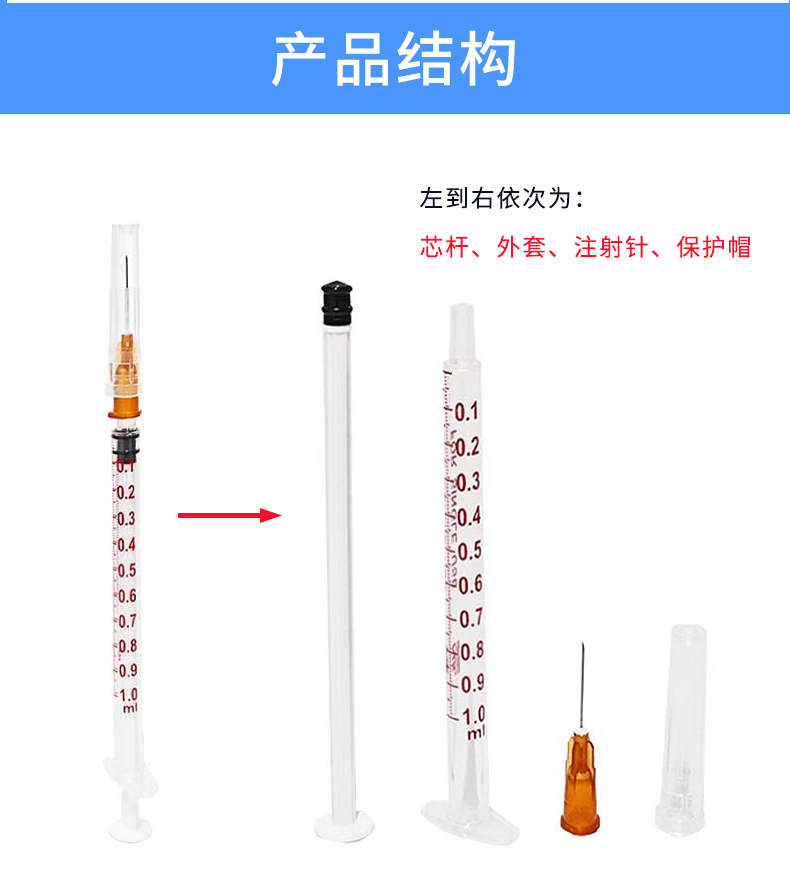 康德萊 一次性使用無菌注射器 1ml 產(chǎn)品結(jié)構(gòu):