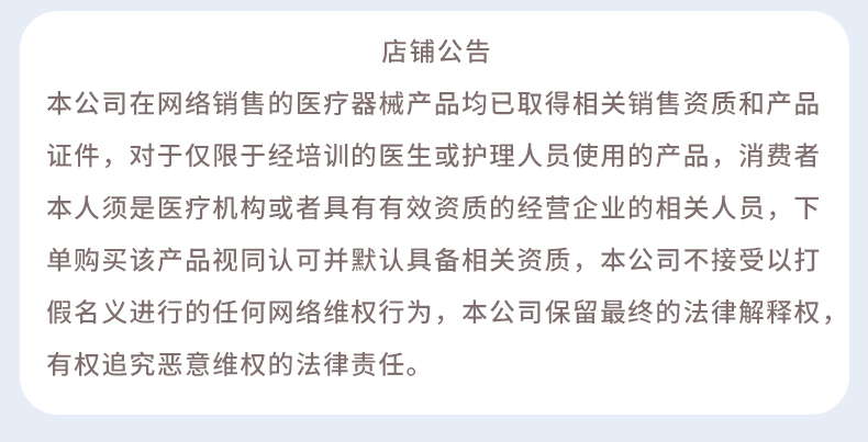 2、本產(chǎn)品僅銷售給醫(yī)療機構(gòu)和具有有效資質(zhì)的經(jīng)營企業(yè)