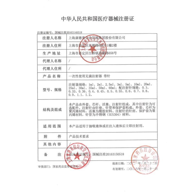 6. 本產(chǎn)品配套一次性注射針后,供對人體皮內(nèi),皮下注射或抽血用,也可配套靜脈輸液針供對人體靜脈注射藥液用;