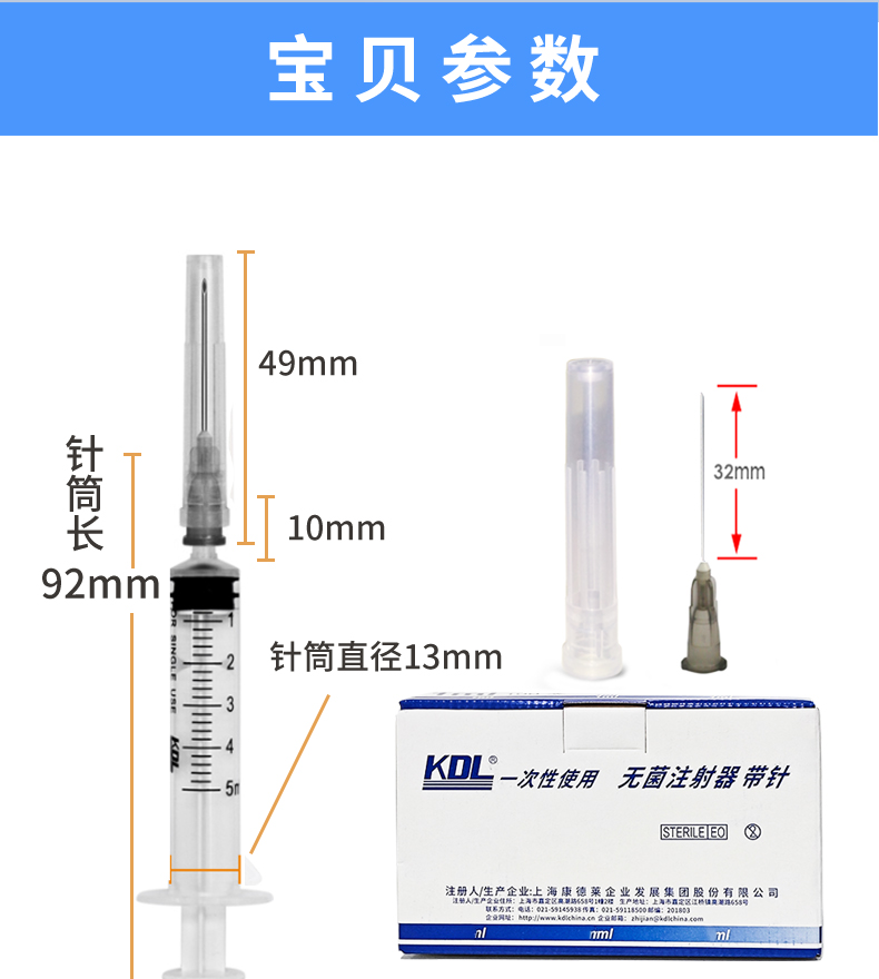 • 康德萊一次性使用無(wú)菌注射器平口 5ml 帶針 0.7×32mm